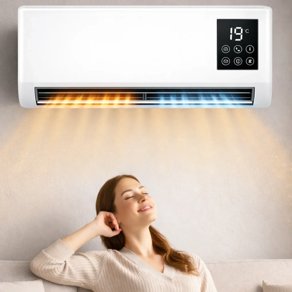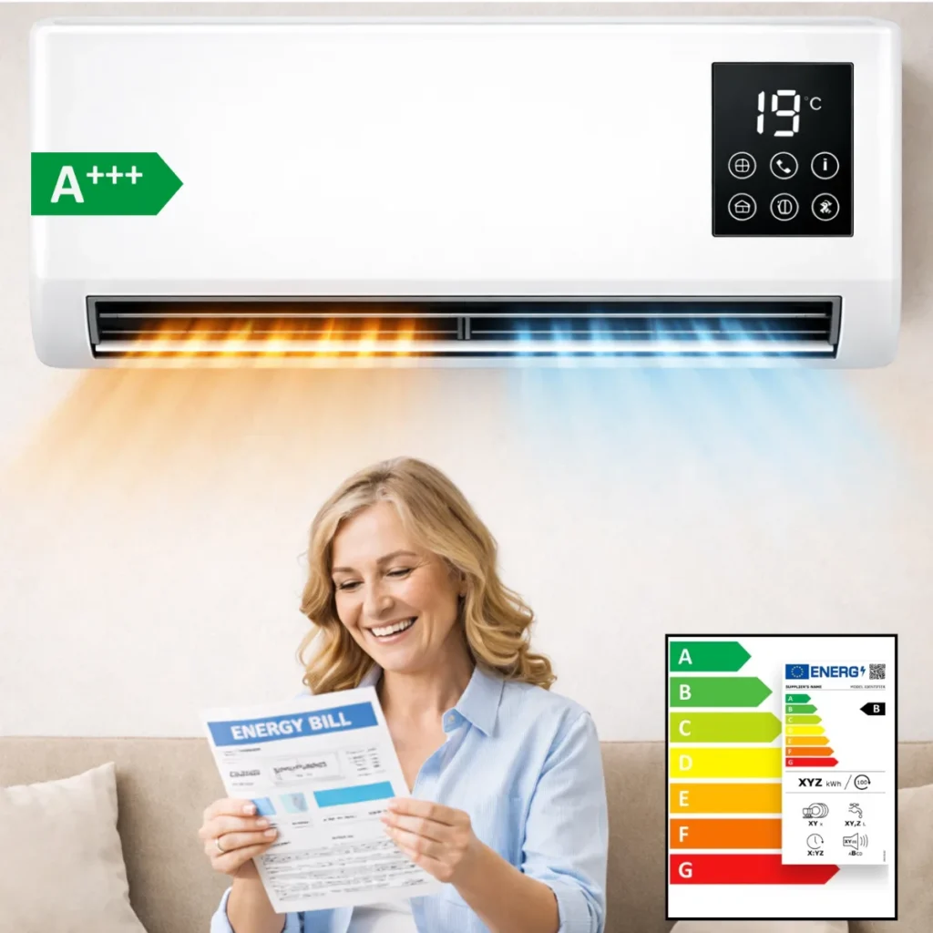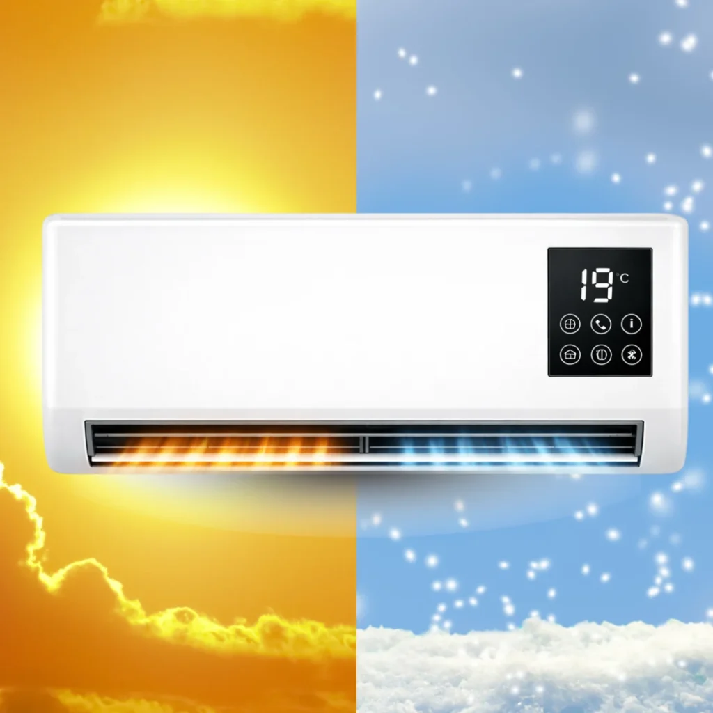 Da. Naprava ima dvojno funkcijo: poleti hladi, pozimi pa učinkovito ogreva prostor.